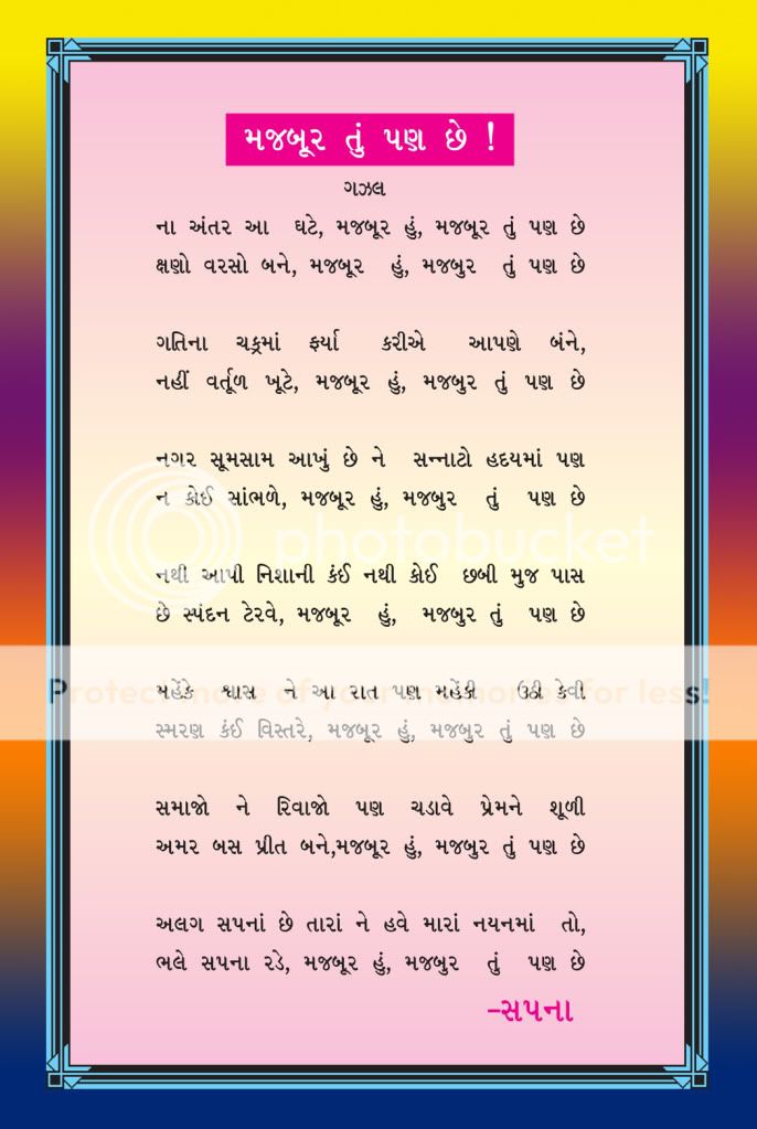 Khubaj saras mujboorie no chitr .Tamari a gazal mane khoob gami.